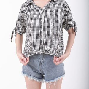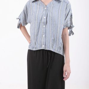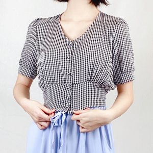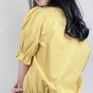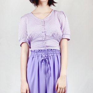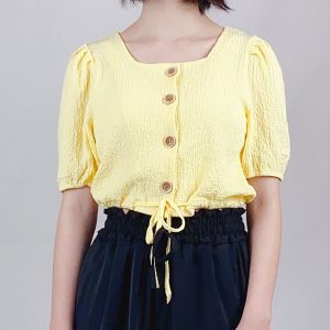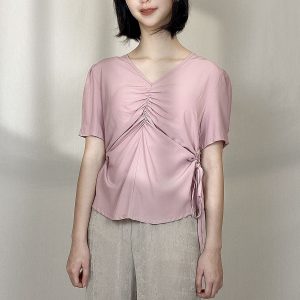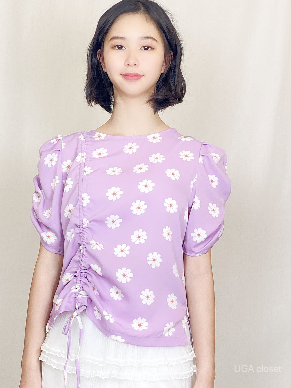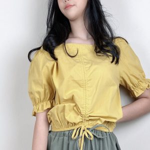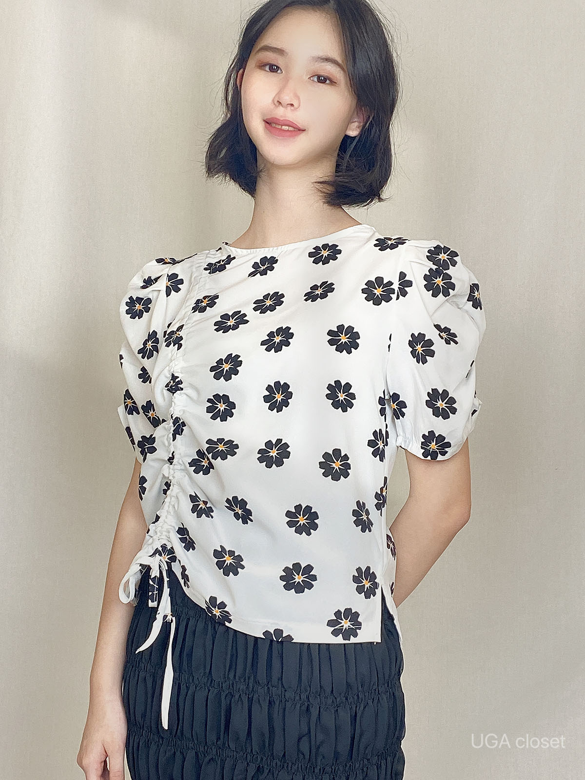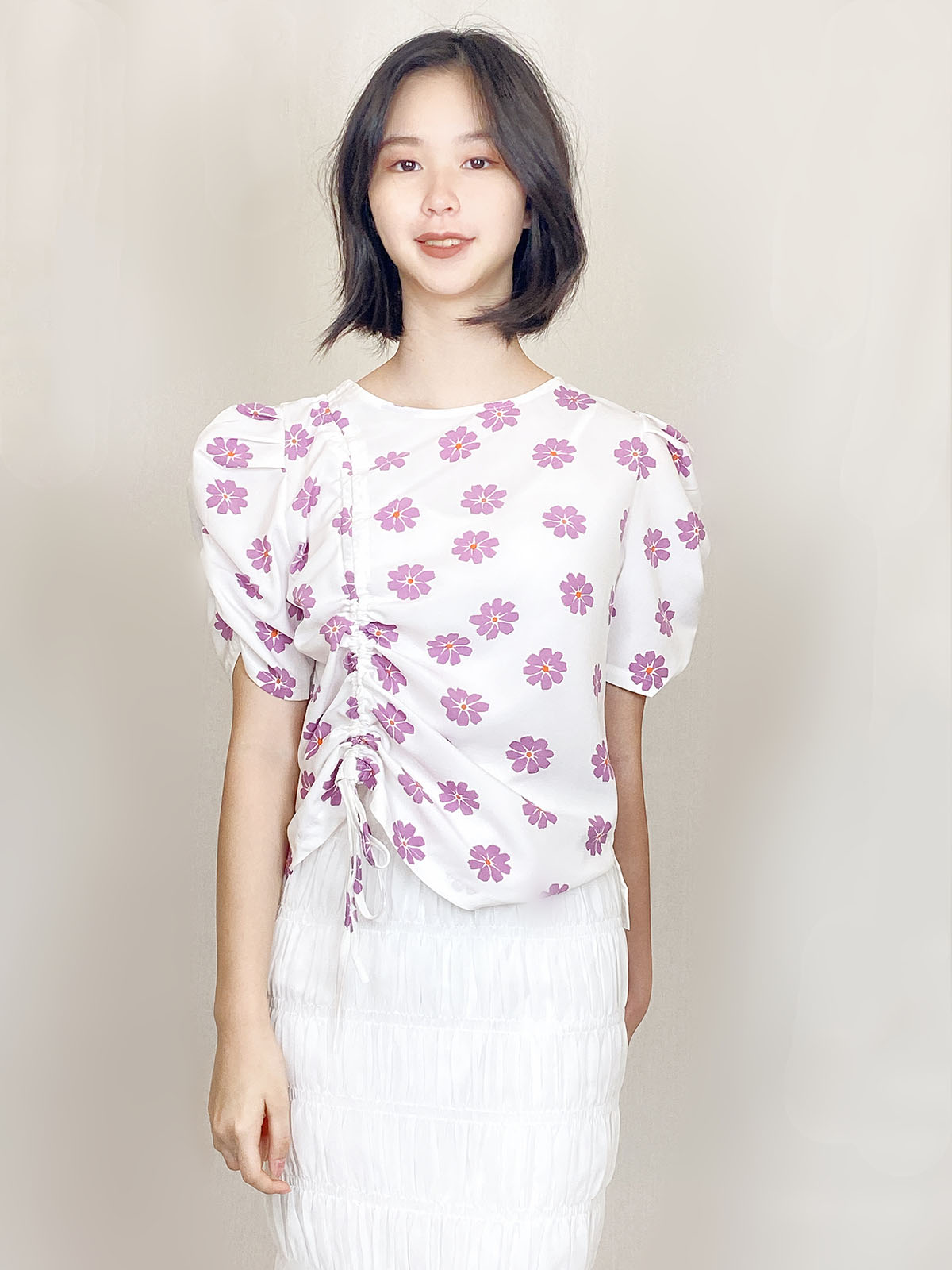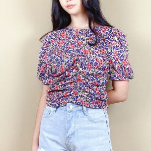 Chrysanthemum Print Drawstring Blouse